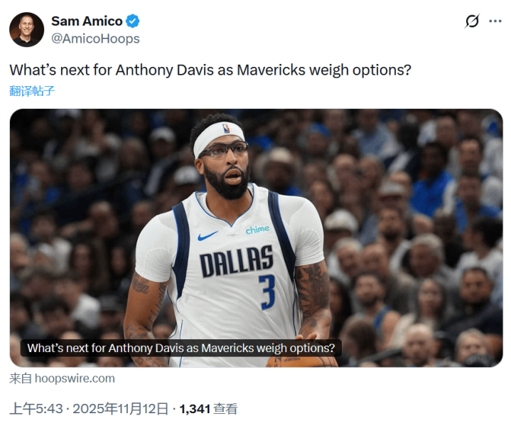 Sam Amico表示,在前总经理哈里森的领导下,交易戴维斯的可能性是不可想象的。但是现在哈里森被解雇了,在球队老板杜蒙特的领导下,联盟内部人士认为,球队可能会开始衡量这位32岁大个子的市场。多位高管告诉ESPN,交易戴维斯是有意义的,因为独行侠队将转而围绕弗拉格建队。
