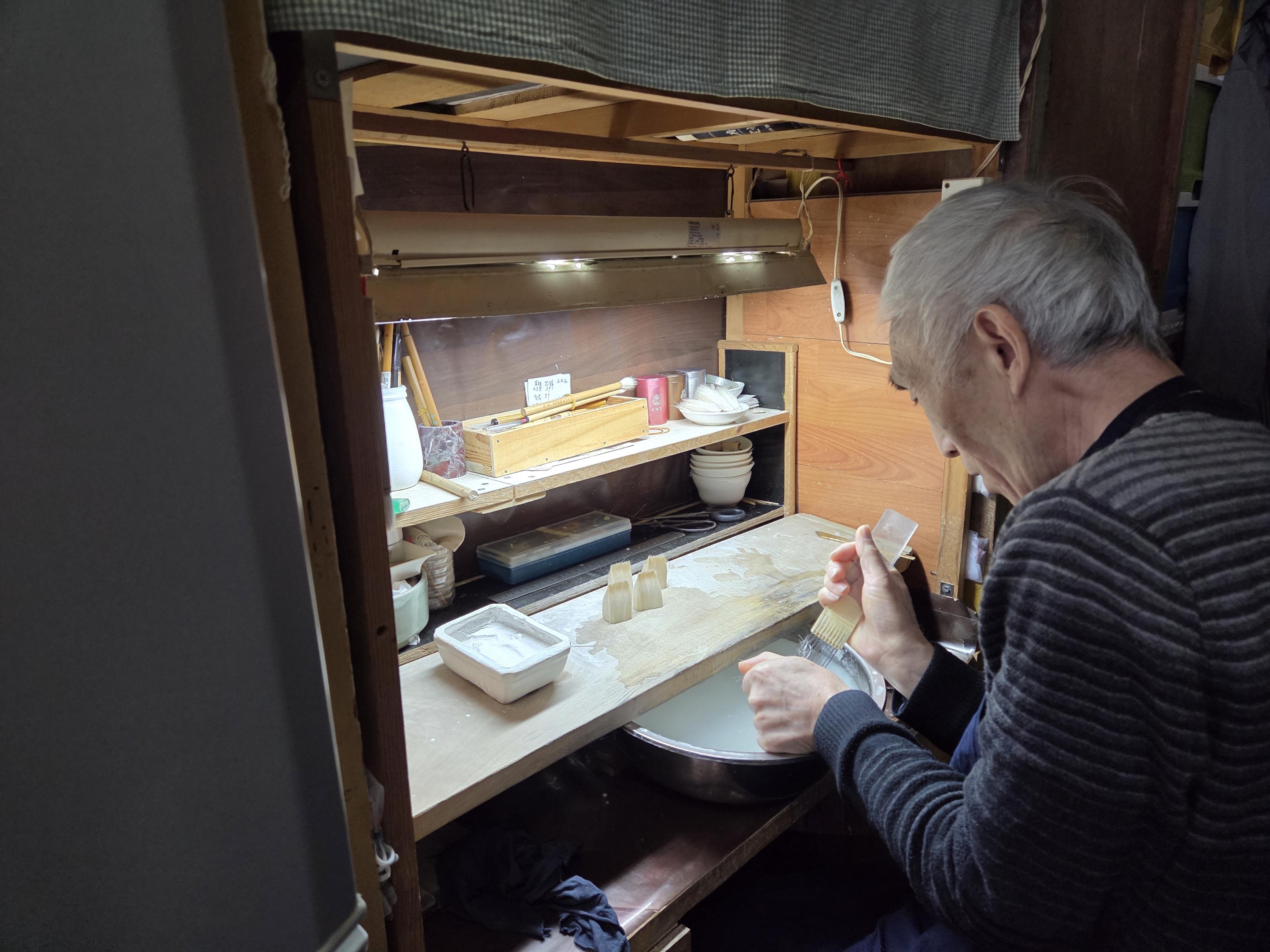 扈成明在工作间制笔